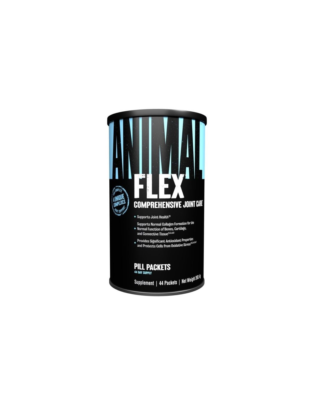 Animal Flex™ został zaprojektowany by zasilić fundamenty twojego ciała, aby pomóc chronić twoje stawy przed ich kruszeniem i deformowaniem, do których mogą doprowadzić duże obciążenia treningowe. Każda paczka Animal Flex™ zawiera kilka kluczowych składników chroniących stawy: (1) kompleks składników budujących stawy, który pomaga odtwarzać i naprawiać tkankę łączną, (2) składniki pozwalające na natłuszczenie (oliwienie) stawów, co zwiększa ich amortyzację w czasie dźwigania dużych ciężarów, (3) kompleks substancji zmniejszających bolesność i umożliwiających rehabilitację, (4) kompleks witamin i minerałów pozwalających utrzymać kości w optymalnym stanie. Animal Flex™ dostarcza w wygodnej postaci (każdy Animal Flex™ zawiera 44 oddzielne porcje – paczuszki) wszystkich niezbędnych składników umożliwiających utrzymanie optymalnego stanu równowagi twoich stawów. Animal Flex™ to twoje opancerzenie ochronne w czasie surowej wojny z „żelastwem” na siłowni.