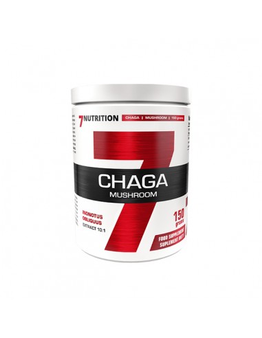 7NUTRITION Chaga Mushroom 150g. Suplement diety. Skoncentrowany ekstrakt (10:1) z Błyskoporka Podkorowego bez zbędnych dodatków i wypełniaczy w formie drobno zmielonego proszku.